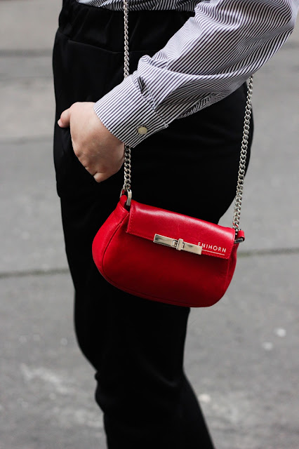 Nagyon kedvelem a fodros ruhadarabokat, de talán ez feltűnt már nektek, hiszen számos olyan bejegyzés készült, amelynél fodros felső vagy alsórészben vagyok. Ezt a kivitelezési megoldás egyszerre tartom bájosnak és elegánsnek, ezért részesítem előnyben. Az Open showroom nyílt napján találtam rá erre a csodaszép SARKOZY vékony-csíkos, fekete-fehér blúzra és egyből szerelem volt. Ami miatt leginkább tetszik, hogy a monokróm színei hétköznapivá teszik, ugyanakkor a különleges szabásának köszönhetően mégis kiemeli a hétköznapiságból. A hűvösebb időjárás következtében az AMNESIA bőrkabátomat vettem felé. Mivel az élénk színek és mozgalmas felsőrészek eleve figyelemfelkeltőek, így kevés ékszert vettem magamra: csupán egy ezüst kör alakú OOH MY DEER fülbevalót viseltem. Sminknél kiemelném, hogy a KELL A PÚDER - Some like it hot rúzsát, valamint a YAMUNA narancs-korall pirosítóját használtam.