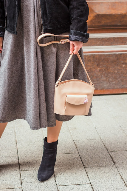 Ti emlékeztek még az első autótokra? Oh, én tűpontosan emlékszem a legelső, családi négykerekűre, a trabantunkra. Azelőtt mindig gyalog mentünk iskolába, ám a csodajárgány beszerzését követően, már "száguldottunk" mindenfele. Úgy örültünk, még annak ellenére is, hogy télen azért rettentő hideg volt benne és nehezen melegedett fel. Gyermekkoromnak tehát meghatározó jelensége a Trabant limuzin. Így önfeledt boldogsággal vettem szemügyre egy, a belvárosban parkoló veterán kocsit. Mivel már a kellemes idő beköszöntött, egy szoknya-pulcsi kombót vettem fel egy stílustanácsadáson kapott instrukciók mentén. A tél-nyár típusba tartozva főként a hidegebb, metálos árnyalatok állnak nekem jól, épp ezért az ezüst fontos kelléke a ruhatáramnak. Ezentúl többször lesznek second hand shopban vásárolt holmik is a blogon, ezzel leginkább környezettudatosságra benneteket buzdítani, illetve bemutatni, hogy 1-1 megvásárolt, egyedi, designer darabot könnyen és trendin lehet kombinálni a turikban kapható dolgokkal. A second hand fekete kabát remekül ellensúlyozza a FIBULA crop pulóver és az ÉMÉ ezüst szoknya együttesének elegáns hatását. A pulóver alá egy hosszú ujjú, garbó nyakú, MONIK bodyt vettem fel, egyrészről, mert önmagában pulóvert ritkán veszek fel, illetve mert a púdernek ez az árnyalata a tél-nyár típusnak is jól áll. A kiegészítők színeit az öltözék színpalettája alapján válogattam ki: az LTS SHOE DESIGN csizma a kabáthoz, a TIMROSE fülbevaló a szoknyához, a CHLOÉ LIGHTS a bordó pulóverhez, míg a STOYKA desert lily kollekciós táska, a SERTEES öv a púder színvilághoz passzol.